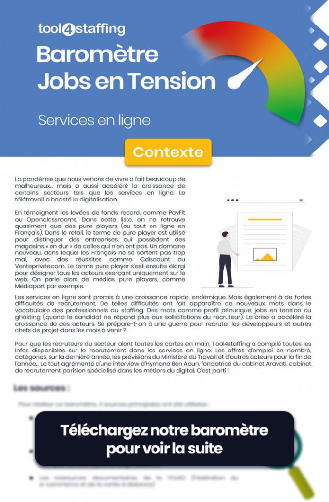 Baromètre Jobs en Tension : Secteur Services en ligne – Septembre 2021
